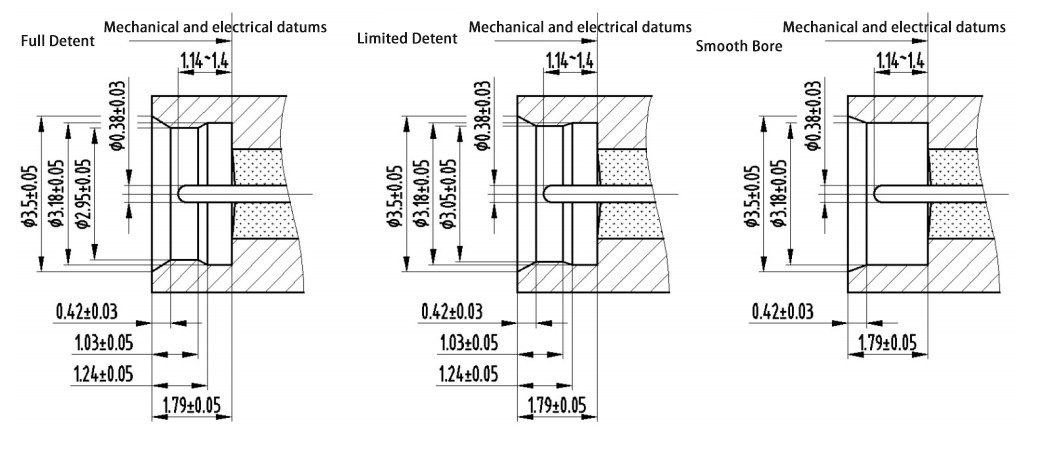 Luchtdichte RF-coaxiale connectoren van het SMP-J-type hebben drie interfacevormen: volledig echappement, half echappement en lichtgat. Bij de naamgeving van het model betekent F volledig echappement, L betekent half echappement en S betekent licht gat. De interface-afmetingen zijn onderverdeeld in standaard interface-afmetingen en korte interface-afmetingen, die beide compatibel zijn met stekkers van het SMP-K-type.