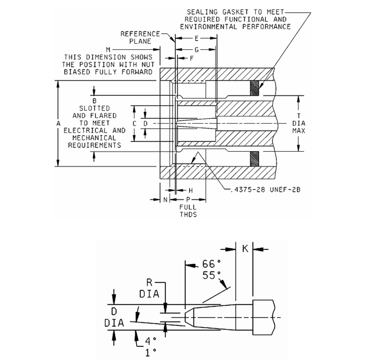1. Deze interface moet voldoen aan de profielvereisten zoals gespecificeerd in MIL-PRF-39012/26.
